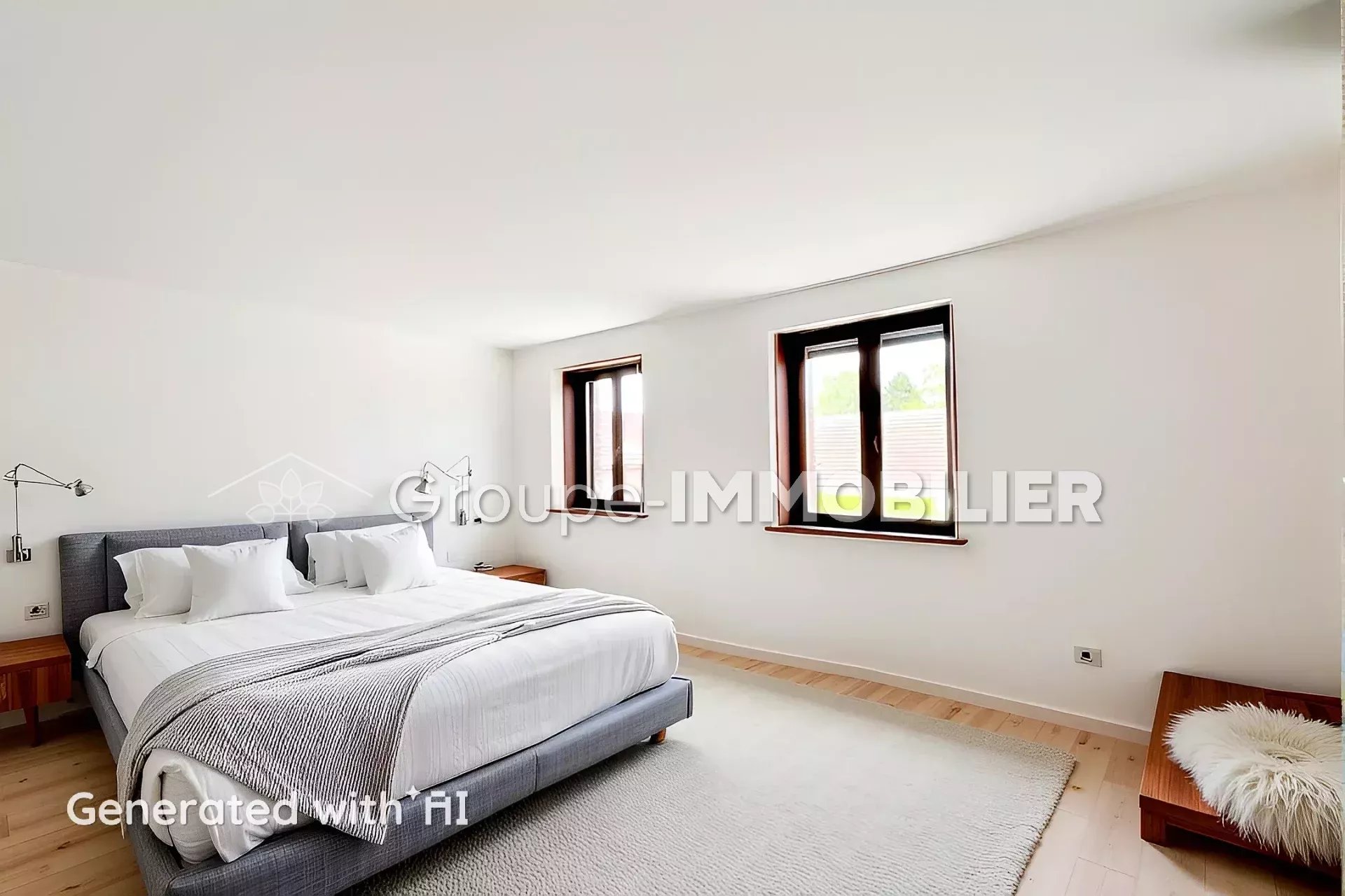 À l’étage, un palier dessert deux grandes chambres et donne accès aux combles aménageables, d’une surface d’environ 36 m² au sol, permettant la création d’une troisième chambre, d’un bureau ou d’un espace de loisirs selon vos besoins.